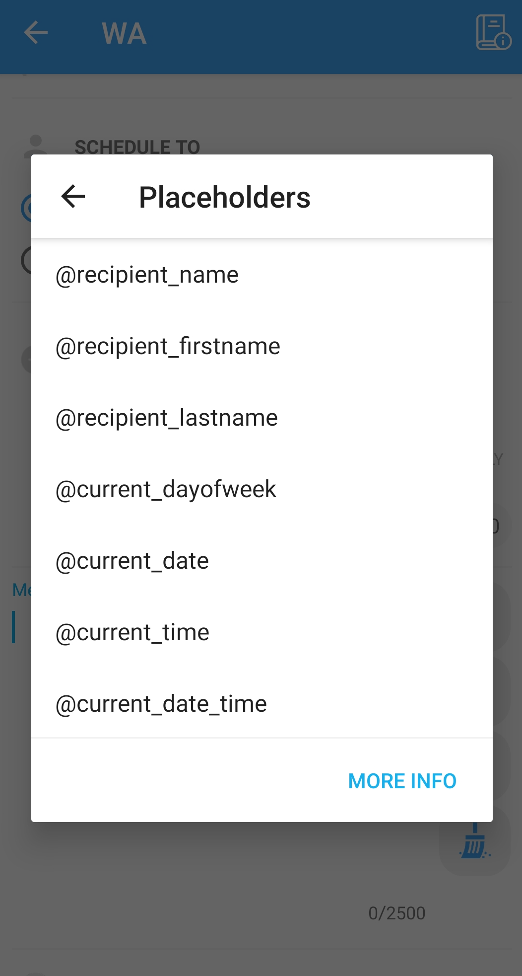 Insert the Placeholder: Tap on the desired placeholder from the list. It will be inserted at the current cursor position in your message.